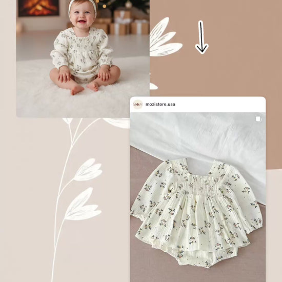 Dress your little one in timeless charm with our Floral Smocked Baby Romper Dress, designed for both comfort and cuteness. Made from a soft cotton blend, this romper is breathable, lightweight, and gentle on delicate skin—perfect for everyday wear or special occasions.