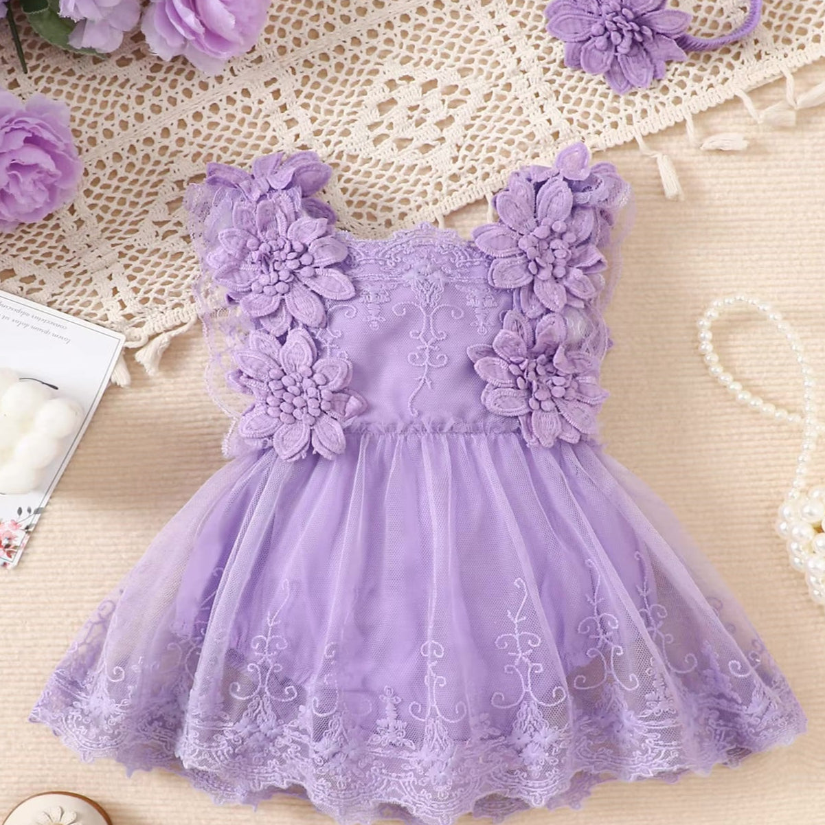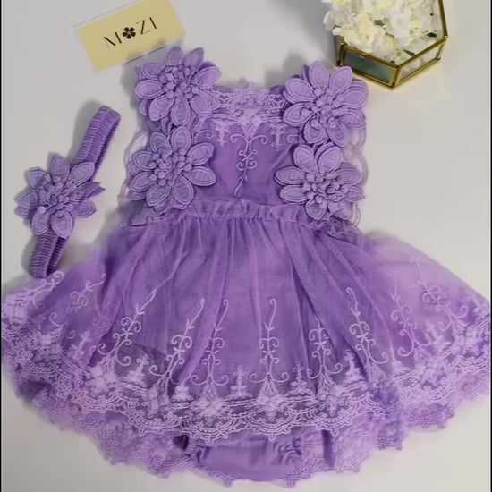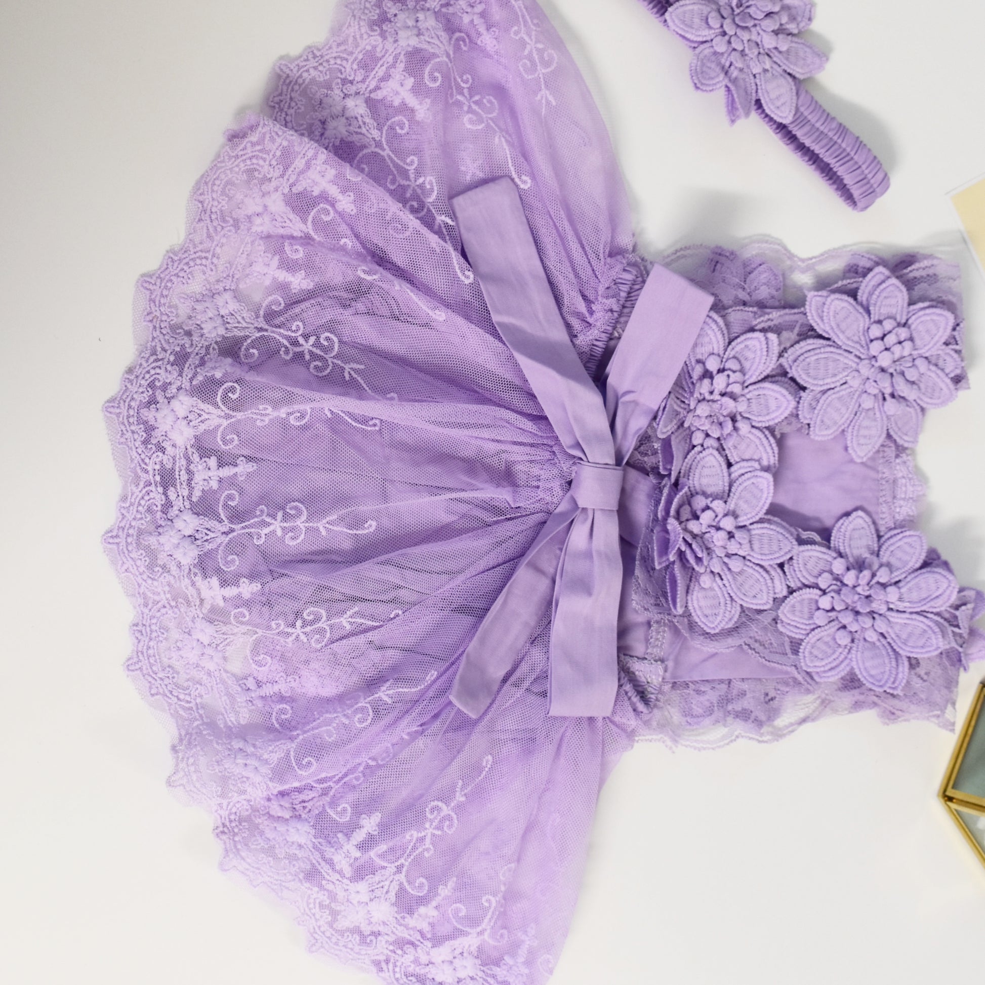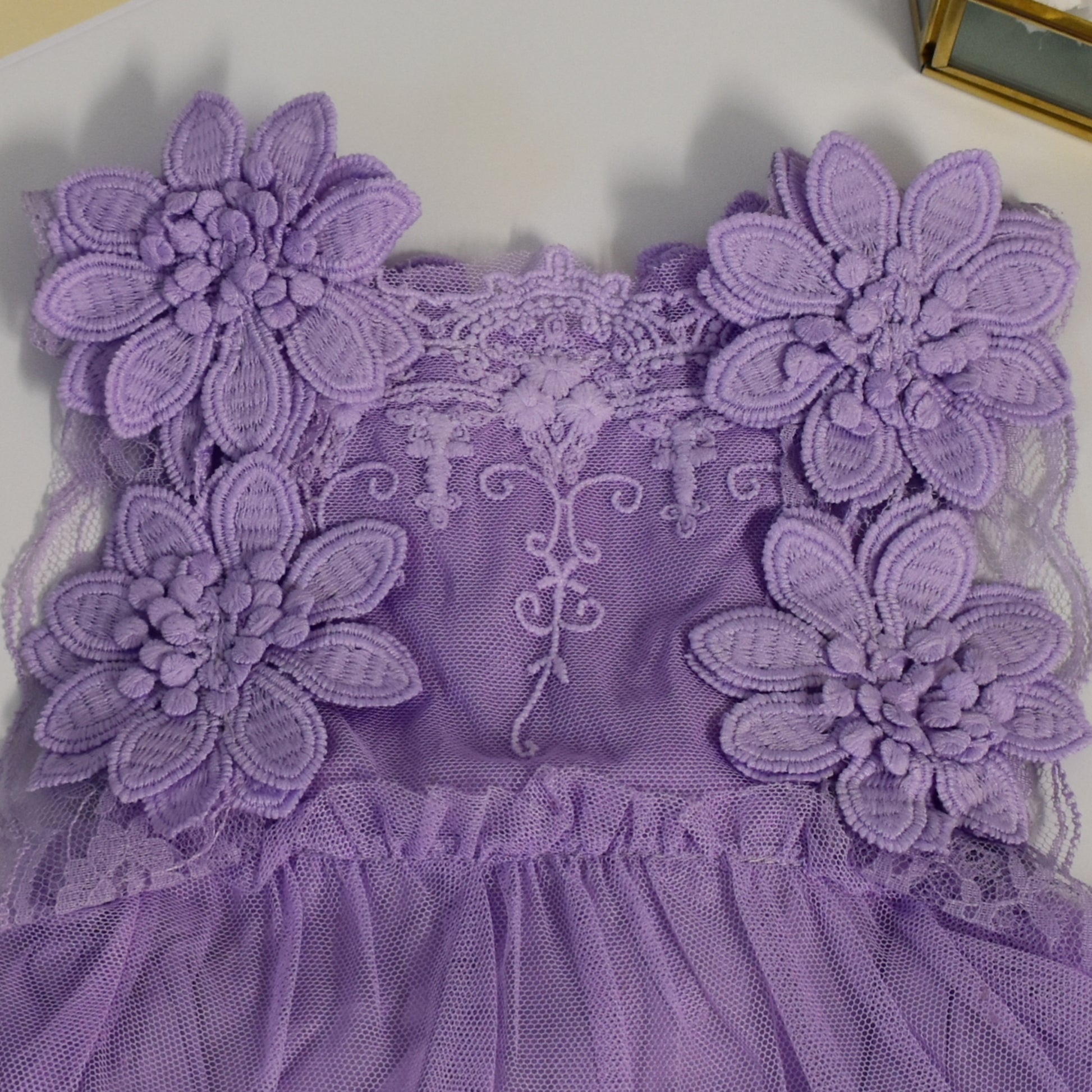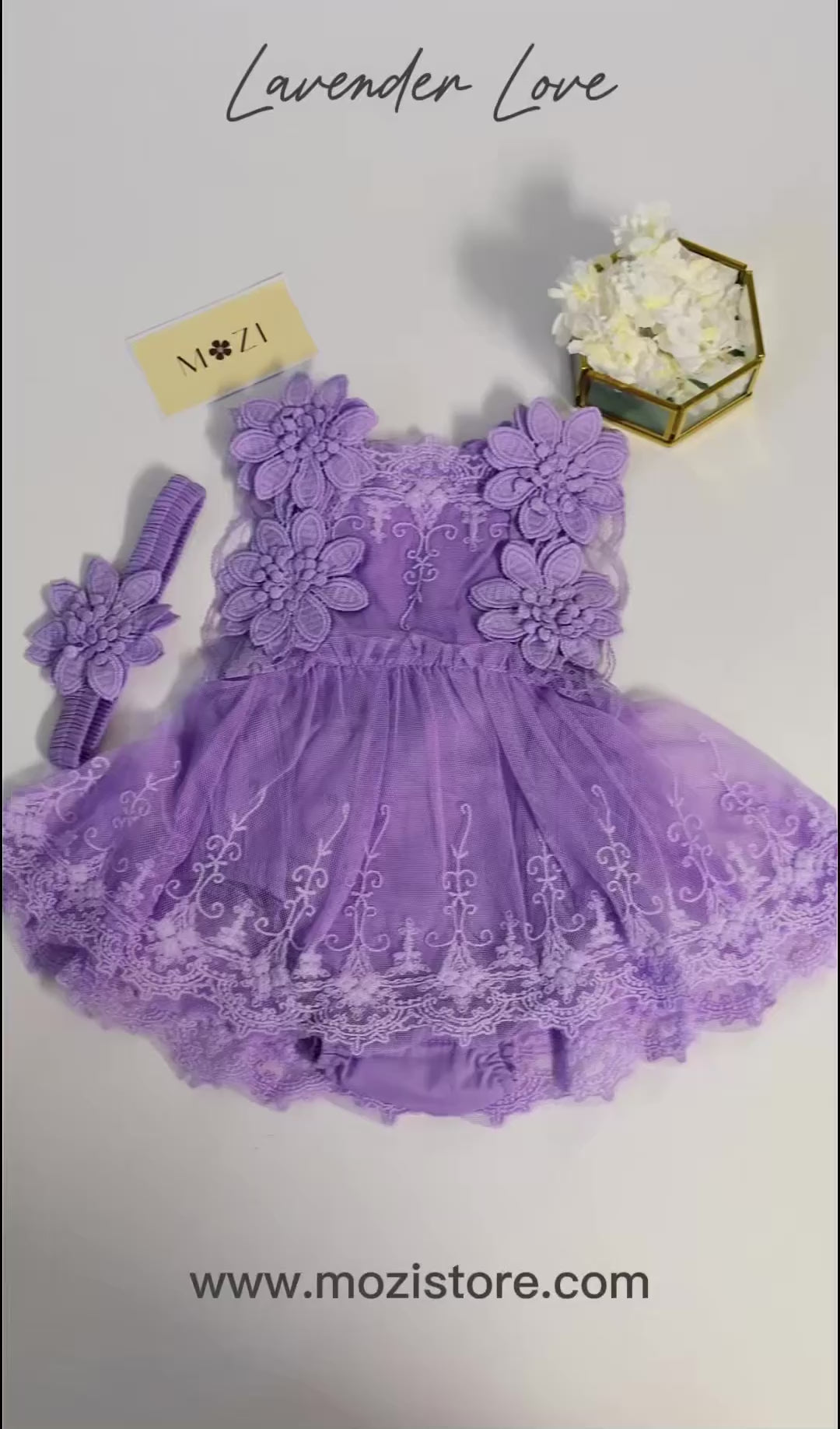 Bring out the charm in your little princess with this enchanting lavender lace dress from MOZI. Designed with delicate floral appliqué, a soft tulle overlay, and a statement bow, this outfit is perfect for birthdays, photoshoots, parties, and special occasions.