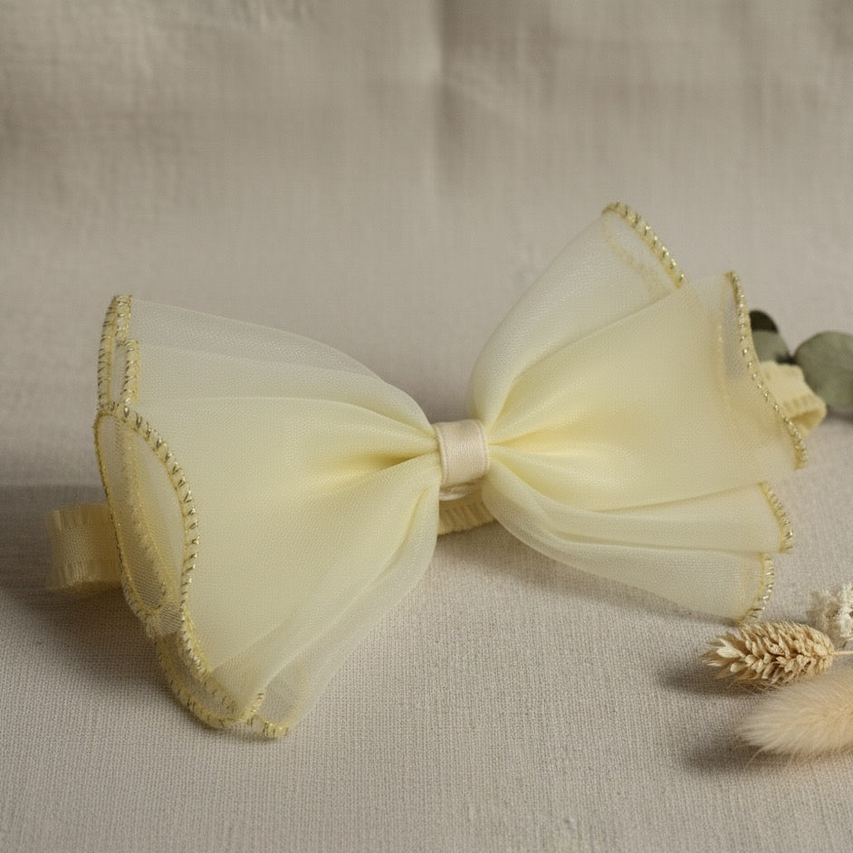 Yellow bow with gold trim headband